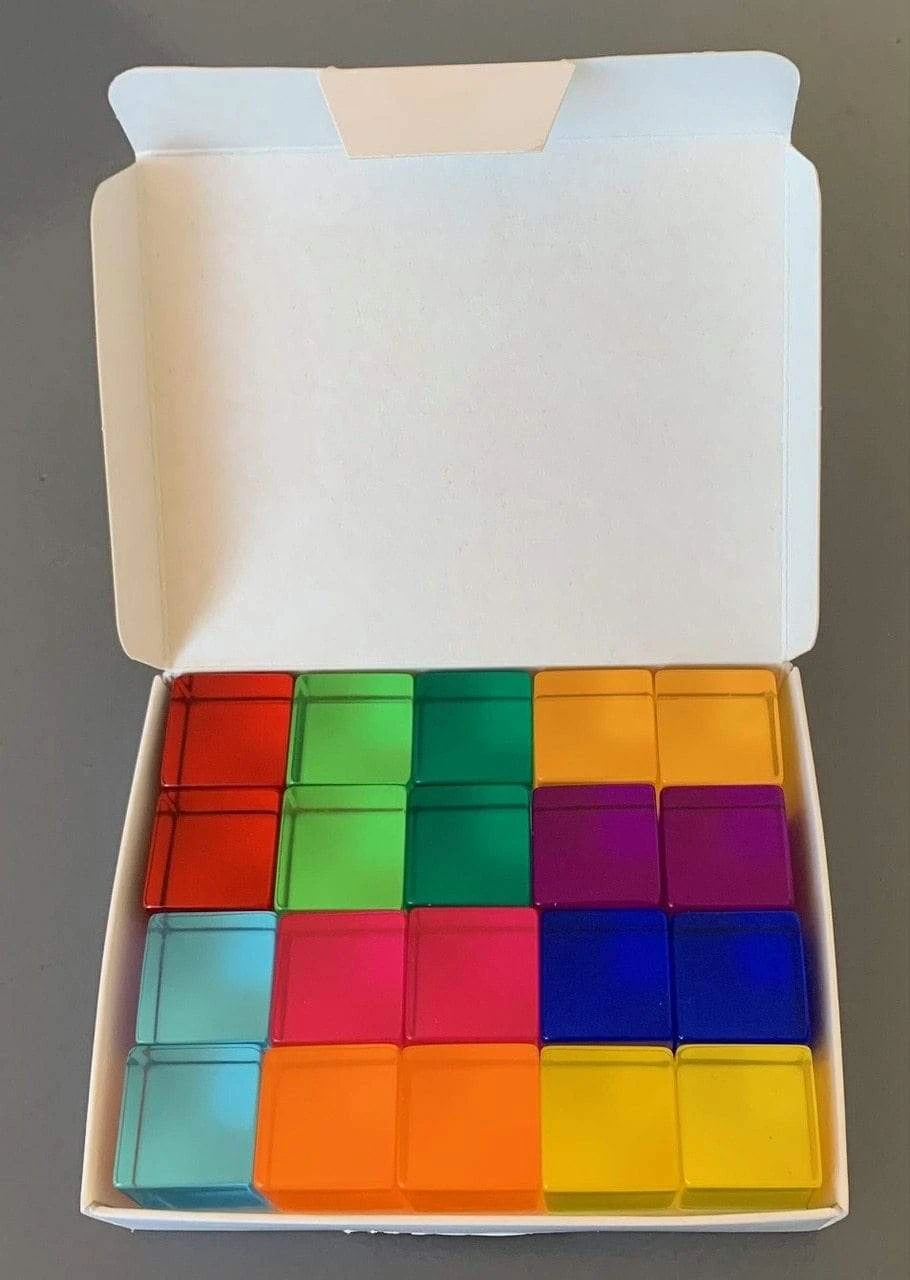 - Beautiful made set of 20 pieces of transparent lucite building cubes