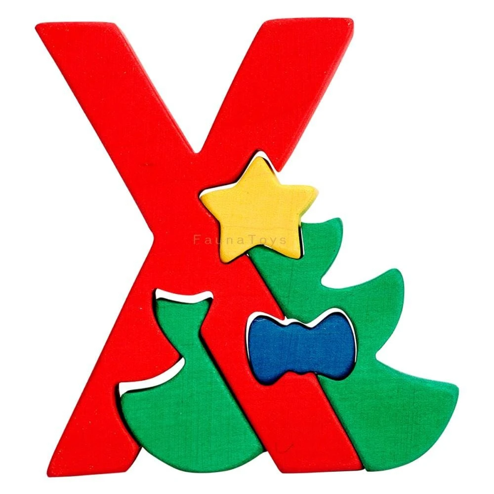 Fauna Trade wooden alphabet puzzle X is for Xmas