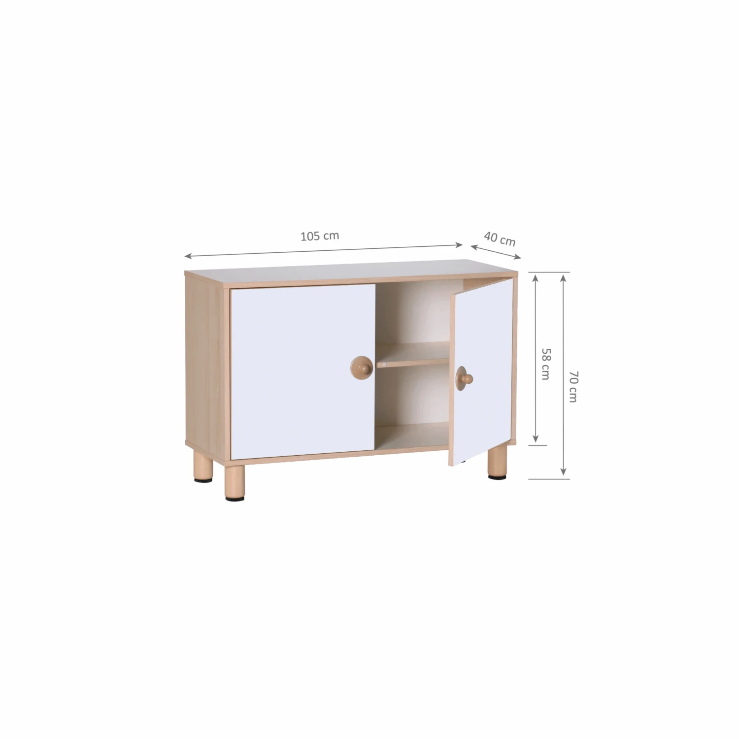 Made of birch plywood with white and natural wood colour HPL fireproof veneer for a modern look. A detailed instruction manual is included. Assembly is required.