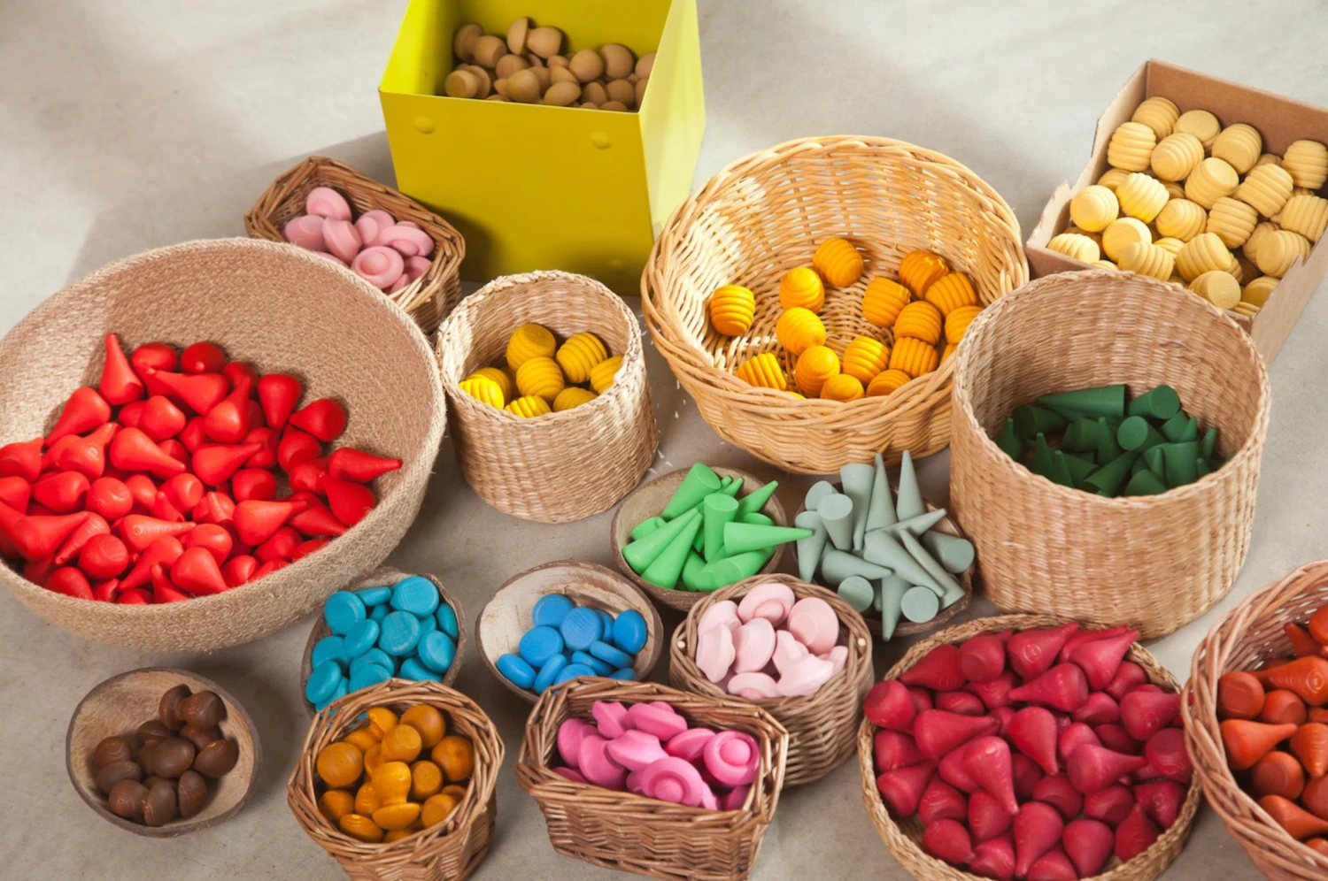 Handmade from sustainably sourced wood and finished with non-toxic colours, Grapat Mandala sets are a perfect addition to imaginative play, role play, creative picture making and story telling. They are perfect for counting and sorting and assisting with mathematical concepts. The possibilities are inspiring.