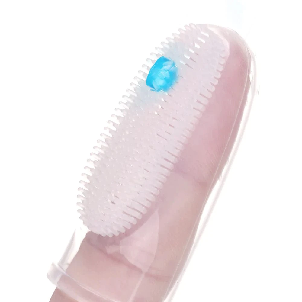 - Ridges on the back of each finger toothbrush help to massage your baby’s gums and gently clean their tongue.
