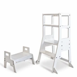 My Duckling JALA Deluxe Adjustable Learning Tower (White/Natural) – Flag With Rectangle Handle