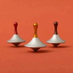 Londji new collection of spinning tops inspired by the images of a drop falling on the water. These spinning tops are small, cylindrical toys crafted from aluminium, a lightweight and durable metal. It is designed for the simple, yet captivating act of spinning on its tip. The top typically features a rounded bottom with a pointed tip, allowing it to rotate smoothly when spun.