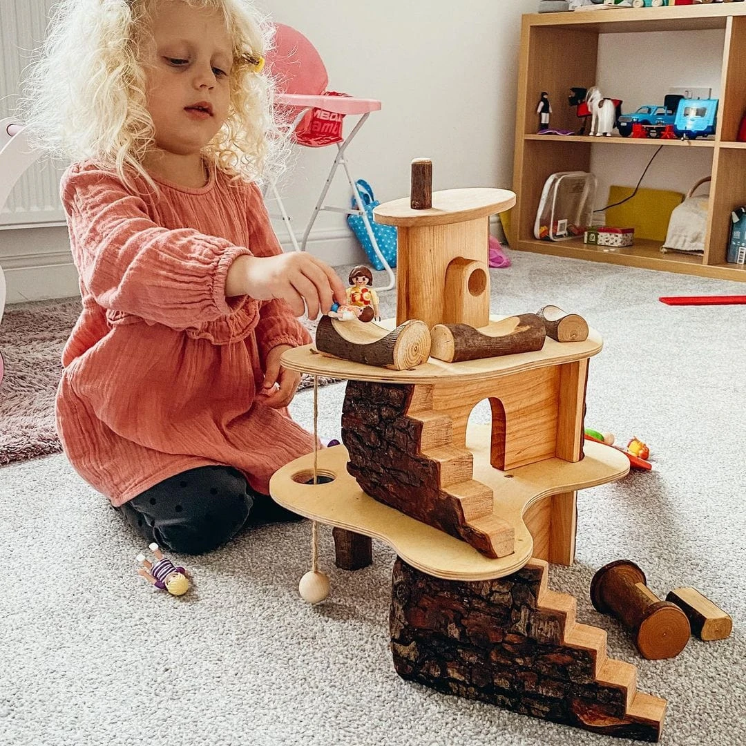 Magic Wood Tree Houses are made from reclaimed cherry, apple and elder trees, sanded and finished with natural flax oil for playability and long-lasting durability. Magic Wood toys bring children in touch with nature and no tree has been felled in the process.