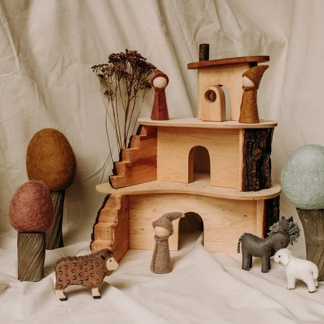 How sweet is this Classic Treehouse from magic Wood? The perfect home for fairies, elves, small dolls or animals, it is made in Europe from natural reclaimed cherry wood and has rustic bark edges. A beautiful wooden toy for inspiring imaginary play, it’s open design allows children to play with it from all sides. The three levels are removable and sit on top of each other, or can be played with as 3 individual pieces and can be packed away to a compact size.