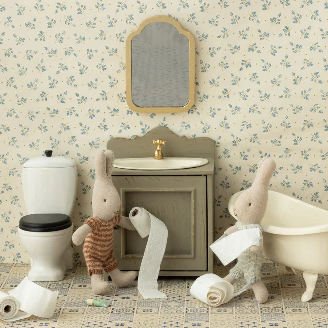 A beautiful golden mirror that fits just perfectly in the Maileg Bathroom & Dollhouse.