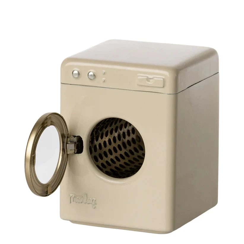 Every busy Maileg household needs a washing machine. Painted metal in an off-white colour. Measures 8.5cm (H) x 6.5cm (W).
