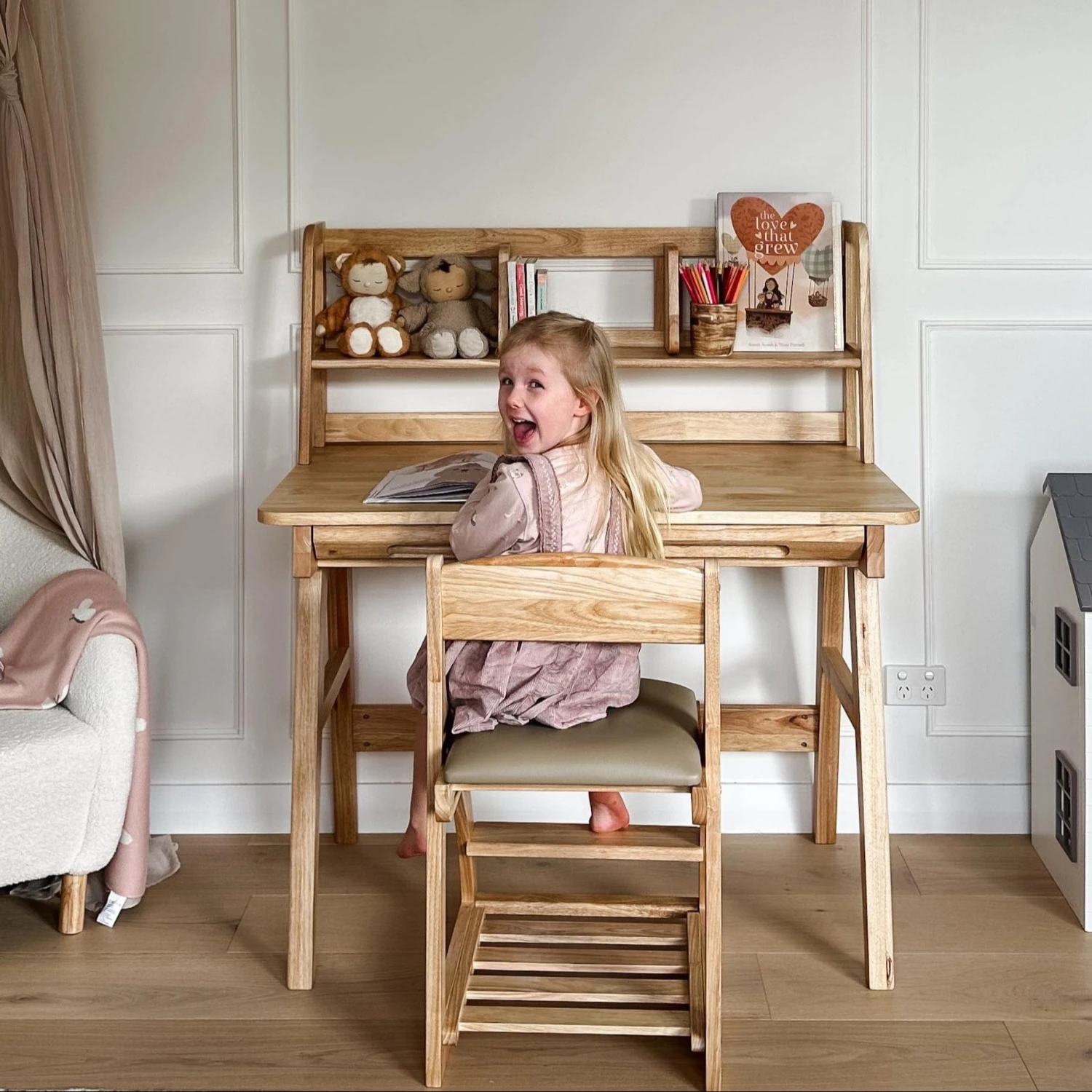 My Duckling Montessori Solid Wood Study Desk is designed to create an inspiring and organized learning environment for children.