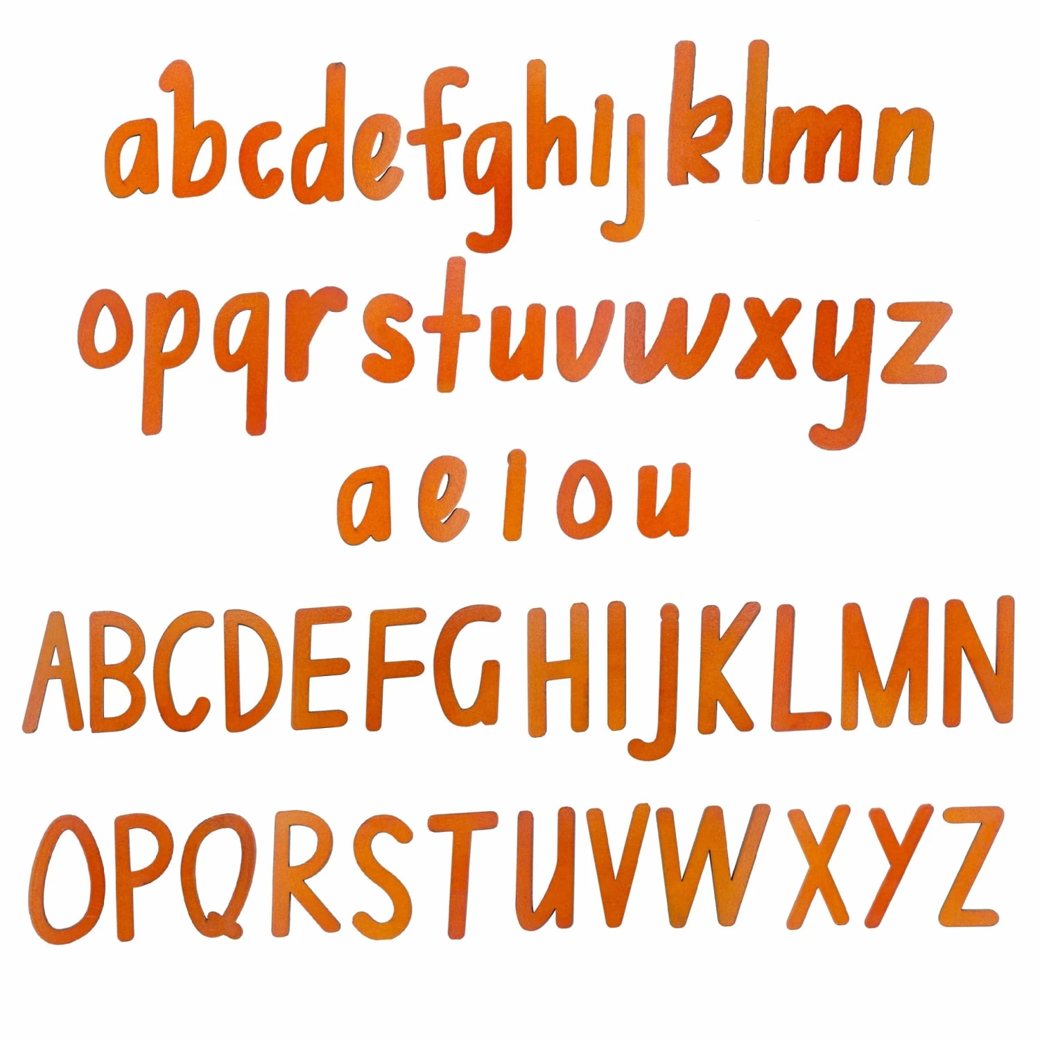 Spelling made fun! Look who’s had a stylish makeover with these wooden, cursive alphabet magnets. This 57 piece set is made up of 26 uppercase and 26 lowercase letters, plus an additional set of bonus vowels. Made with rubber magnet backing rather than metal magnets, you can feel confident in their safety.